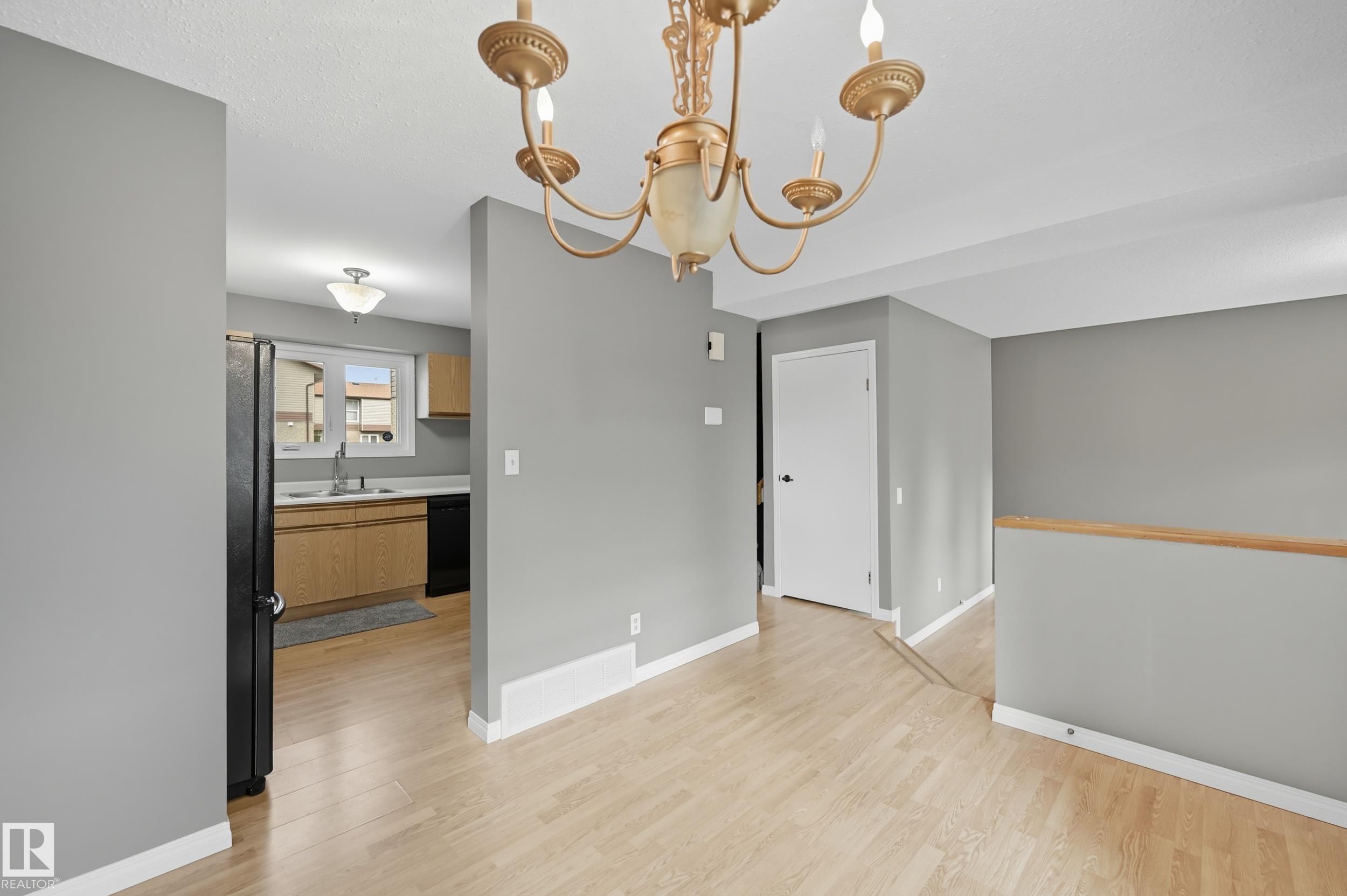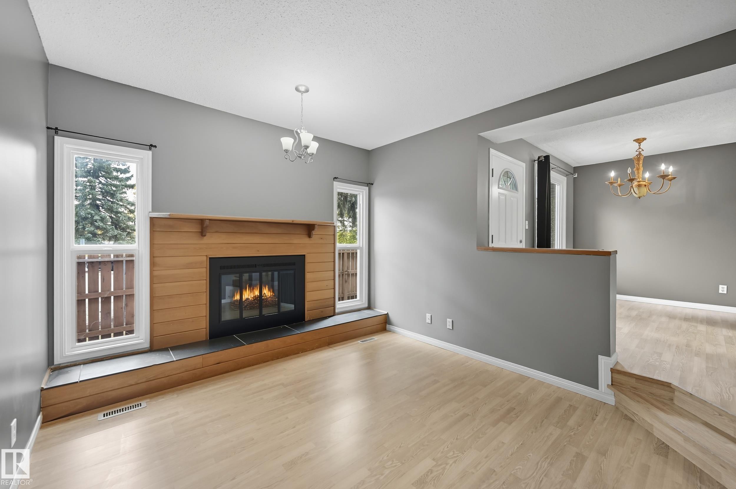 Welcome to this 3-bedroom townhouse in a premium location! This dream home greets you with a stunning open-concept main floor. The kitchen boasts beautiful cabinets, ample counters, and plenty of drawers, seamlessly opening to the dining area and living room featuring a cozy wood-burning fireplace. Upstairs, you'll find 3 bedrooms, including a large master, two additional spacious bedrooms, and a full bathroom. The partially finished basement offers a spacious rec room, a den, and a laundry area, perfect for extra living space. Upgrades include: fresh paint, flooring, hot water tank, shingles, siding, windows, and doors. Parking is conveniently located out front. Enjoy a fenced backyard, ideal for family gatherings or outdoor entertaining. The low condo fee covers snow removal and lawn care, and the home is close to schools, shopping, restaurants, parks, and all amenities. Move-in ready, don't miss this one!