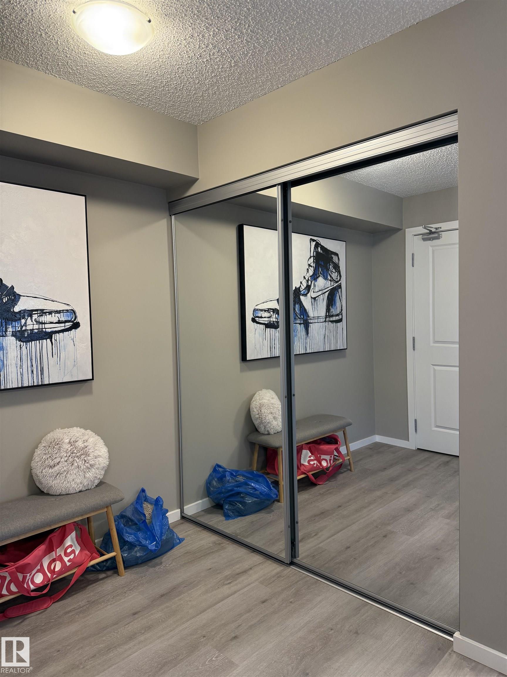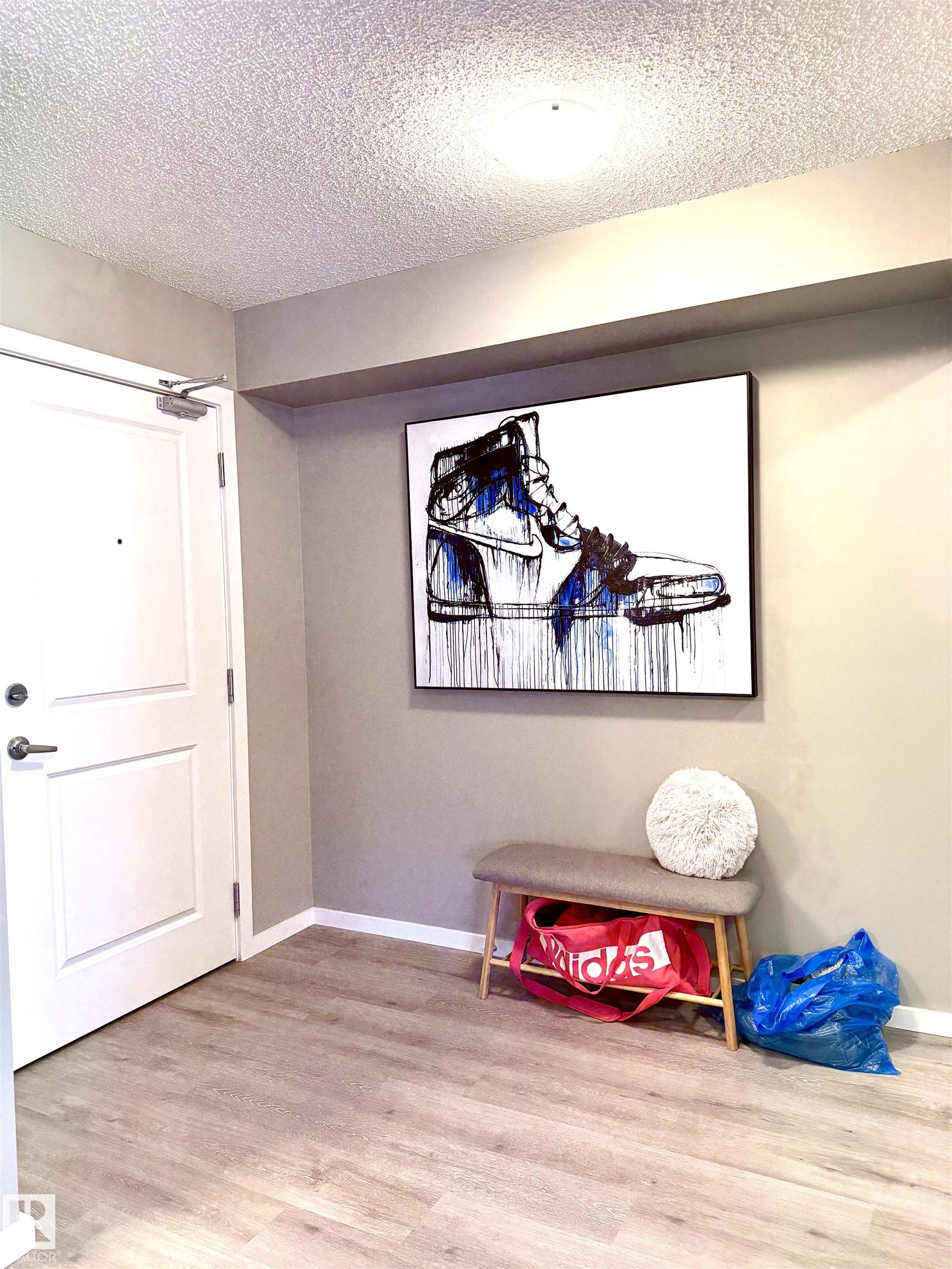 Step into this stunning corner/end unit featuring northwest-facing views and situated on the top premium floor for ultimate privacy and tranquility. This stylish 2-bedroom, 2-bathroom apartment perfectly combines comfort, convenience. Inside, you'll be greeted by an open-concept layout that feels bright and inviting. The kitchen boasts sleek quartz countertops, ample cabinetry. The space flows seamlessly into the cozy casual dining/living area, which opens onto your private patio. The spacious primary suite includes closet and a full ensuite bathroom. The second bedroom and additional full bath provide flexibility for guests, family, or a comfortable home office. It comes with 2 title parking. Outside, you'll love the dog park located right behind the building, ideal for pet owners and outdoor enthusiasts alike. The location offers unbeatable access to Manning Town Centre, recreation facilities, Walmart, parks, shopping, restaurants, a move theatre. This home is the perfect match of style, comfort.