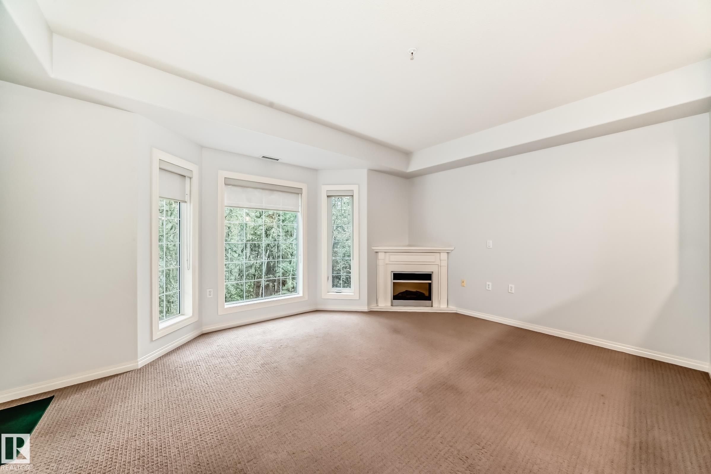 Welcome to Heritage Valley Estates 55+ building! This one-bedroom condo offers A/C, in-suite laundry with stacked washer & dryer, extra storage space, and den. The unit backs onto a wooded nature reserve offering a peaceful setting. The living room is equipped with an electric fireplace and bay window for extra light. Enter though the patio door that leads to your balcony where you can enjoy the beautiful views. Kitchen has maple cabinets, walk-in pantry with plenty of counter space as well as the dinette area. The primary bedroom is spacious with a walk-in closet. Amenities include salt water indoor swimming pool, hot tub, exercise room, kitchen & dance floor, theater room, library, games room (with pool tables, shuffle board, ping pong, darts & more), woodworking room & carwash. Heated underground parking stall close to the elevator with secured storage locker. Handicap accessible, smoke & pet free. Walking distance to all amenities!