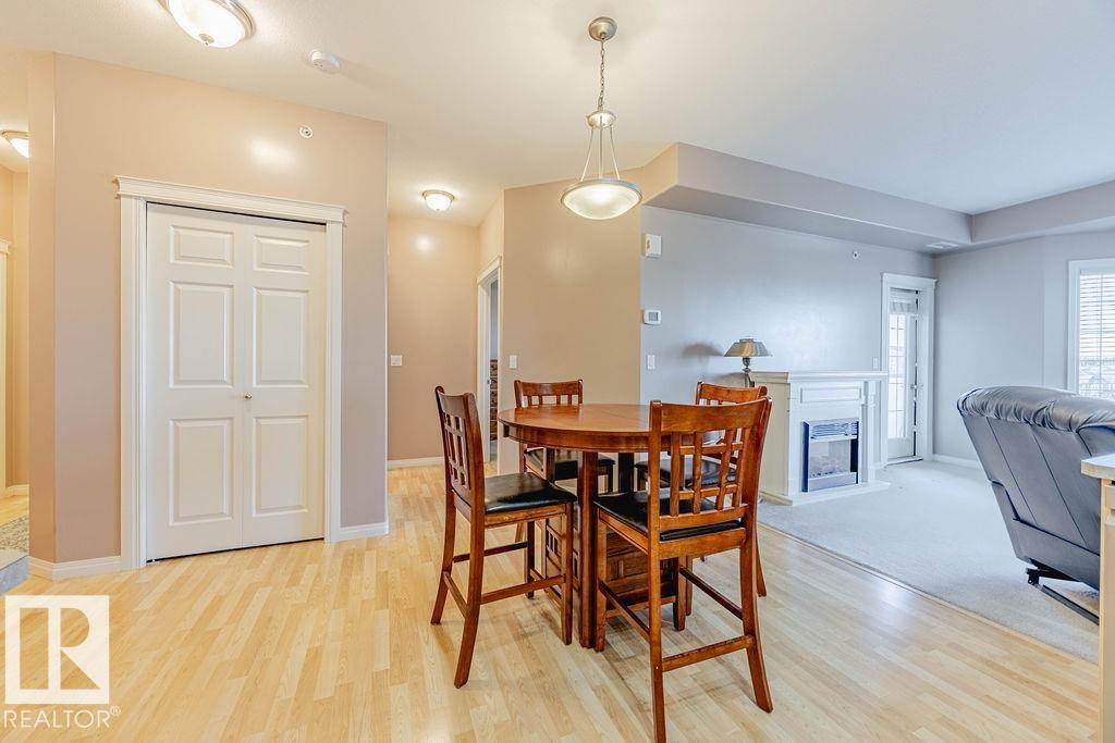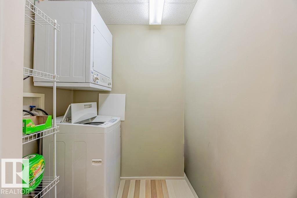 TOP-FLOOR condo in desirable HERITAGE VALLEY ESTATES, a well-maintained 55+ building offering quiet, comfortable living with OUTSTANDING AMENITIES. This immaculate 832 ft2 condo features 9 FOOT CEILINGS, CENTRAL A/C, 2 bedrooms including the large primary with W/I closet, kitchen featuring maple cabinets, corner pantry, newer S/S fridge & dishwasher and in-suite laundry. The spacious west facing balcony with gas BBQ outlet OVERLOOKS A WOODED NATURAL RESERVE and residential homes. Enjoy your heated underground parking stall with a locked storage room located close to the elevator. Smoke & pet free complex featuring outstanding amenities including a large social room with kitchen & dance floor, saltwater indoor pool, hot tub, exercise room, theater, library, games rooms, woodworking room and car wash. Ideally located steps from everyday shopping, close to transit, and offering quick access to Ellerslie Road and the Anthony Henday. A convenient and welcoming community perfect for low-maintenance living.