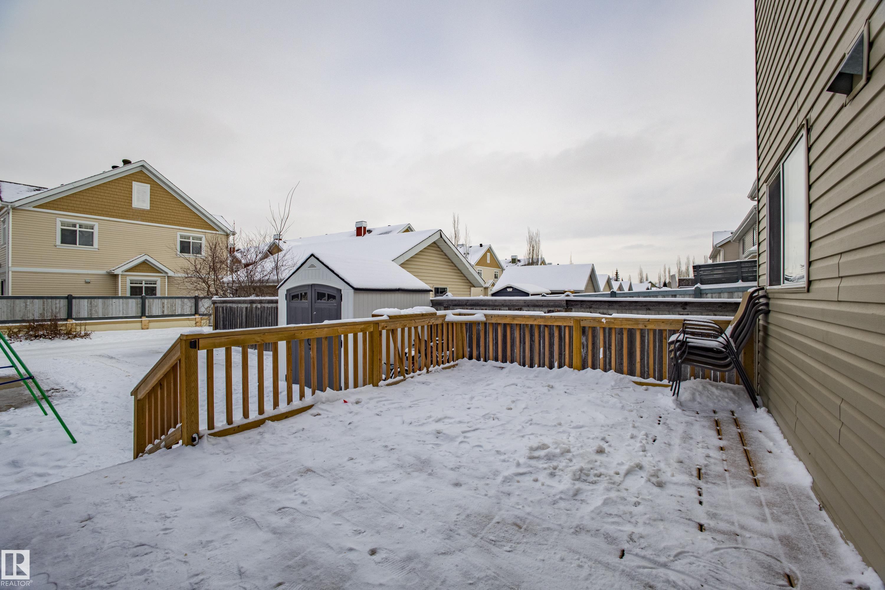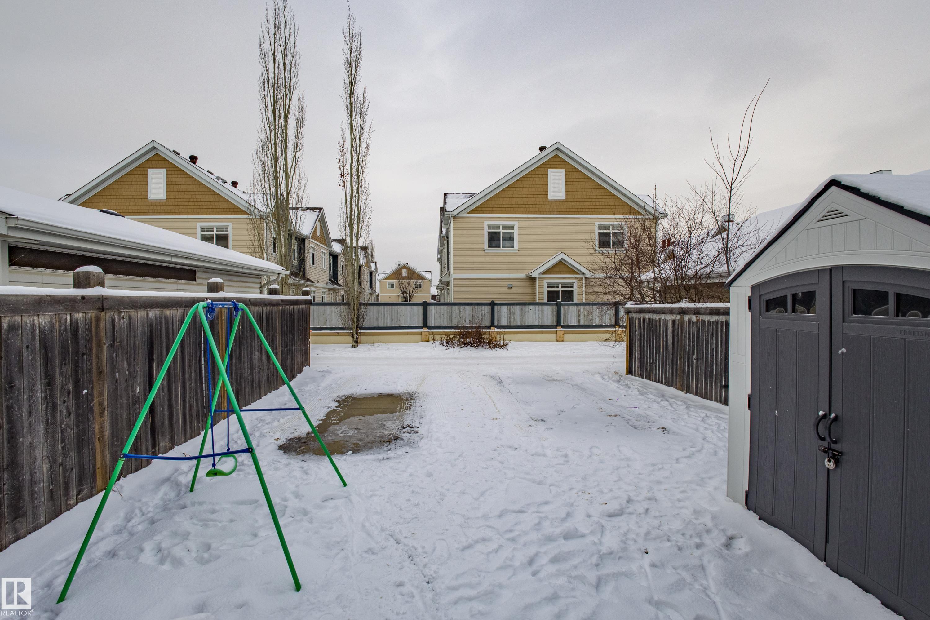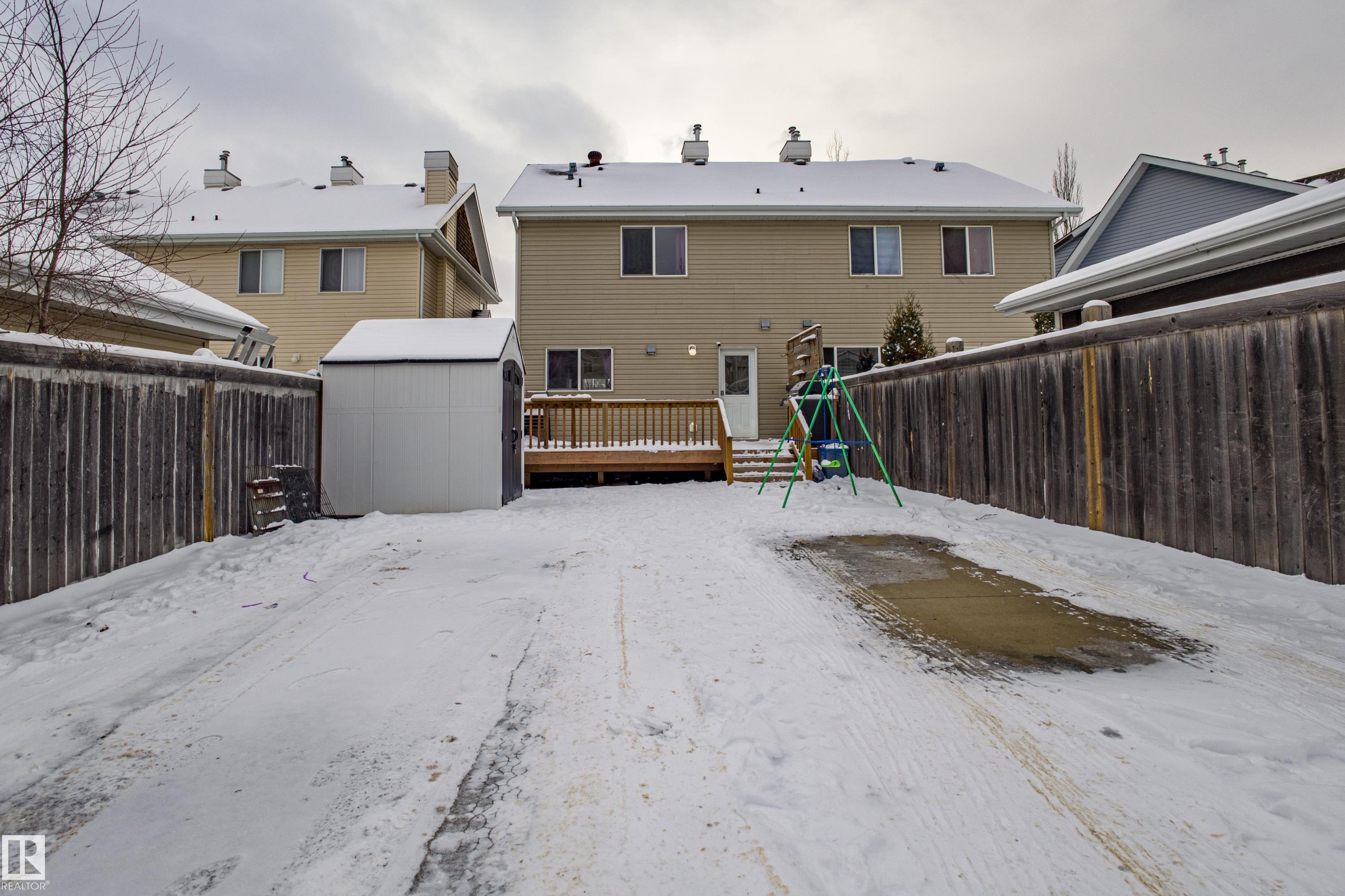 Welcome home to this beautifully maintained 1225 SQ FT - 3 BED, 3.5 BATH 2-storey HALF DUPLEX. Tucked onto a quiet street in the vibrant, family-friendly community of Summerside - one of Edmonton's most coveted areas. The South Facing, Bright and Open main floor welcomes you with laminate flooring, a Cozy GAS Fireplace, and an OPEN CONCEPT Kitchen complete with newer Stainless Steel appliances. The rear entry takes you to the huge deck, back yard, and Double Concrete Parking Pad. Upstairs you'll find two generous primary suites, each Boasting a 4-pc ensuite and Walk In closet. An ideal layout for families, guests, or shared living. The Near FULLY completed basement adds fantastic extra living space with a large rec room, full bedroom, and 4-pc ensuite and Laundry Area. This home is located on a quiet family friendly street. Enjoy year-round access to the exclusive Lake Summerside Beach Club for swimming, boating, tennis, skating, and more. A wonderful home in one of Edmonton's most desirable communities!