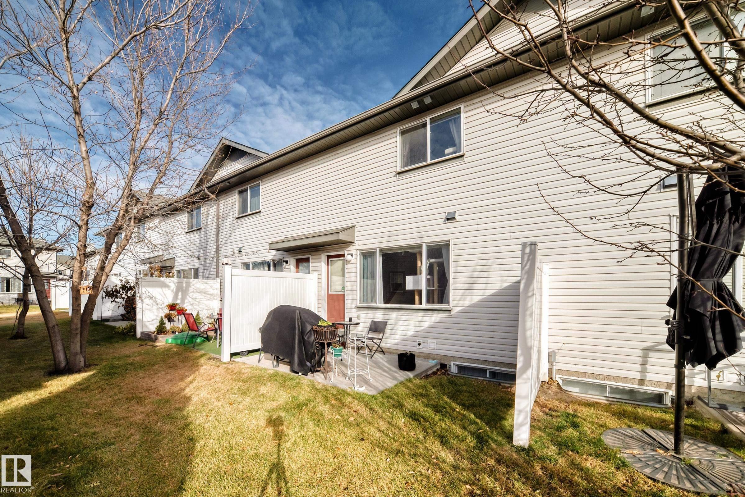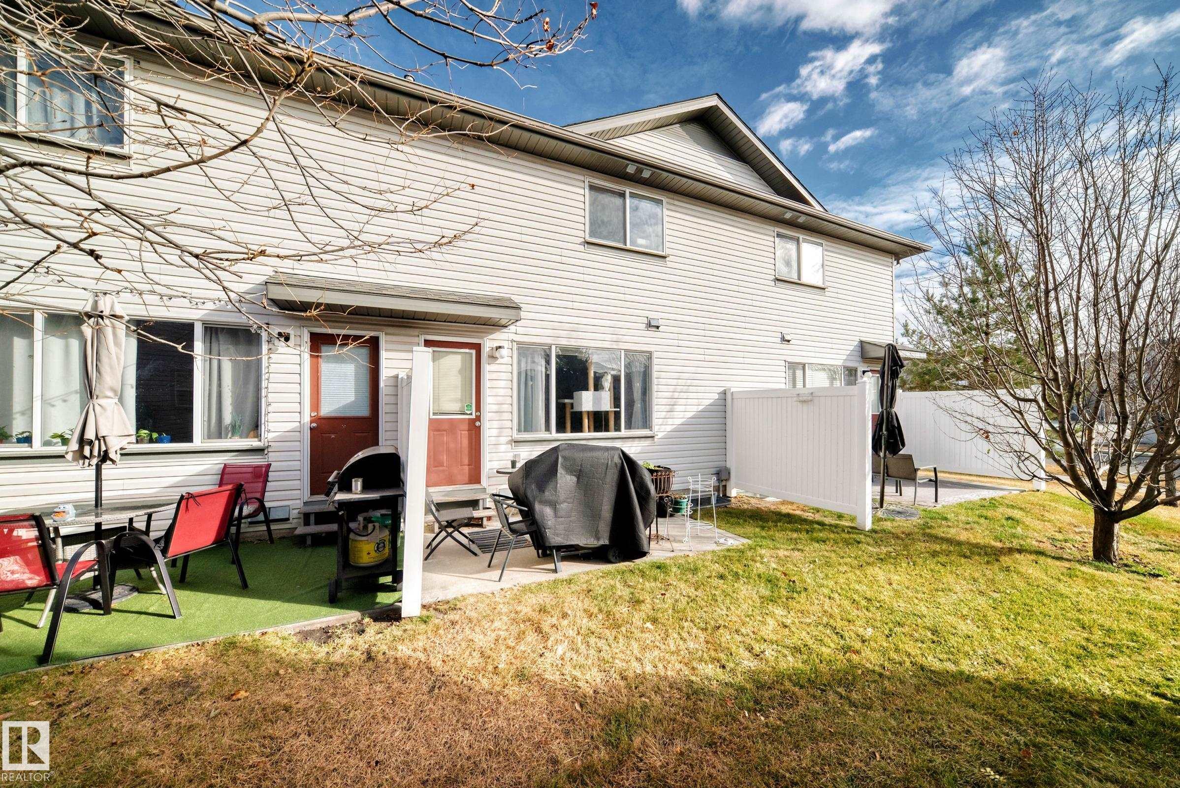 what a great value, over 1200 sq ft above grade, 3 bedrooms townhome in a quiet complex in the Meadows. East facing Master bedroom with a spacious 4 pc ensuite and a walk-in closet, lots of visitor parking, front attached garage with extra parking on driveway. game room in the basement. Back entrance to your private patio for BBQ and leisure. Newer fridge and dishwasher, close to new high school (Elder Dr. Francis Whiskeyjack School ), the Meadows community Recreation centre, Superstore, Banks, restaurants, Anthony Henday are all 5-10 mins away!!.