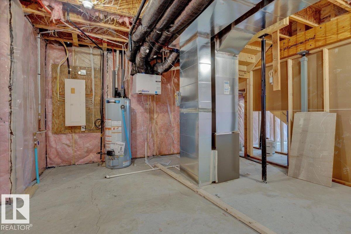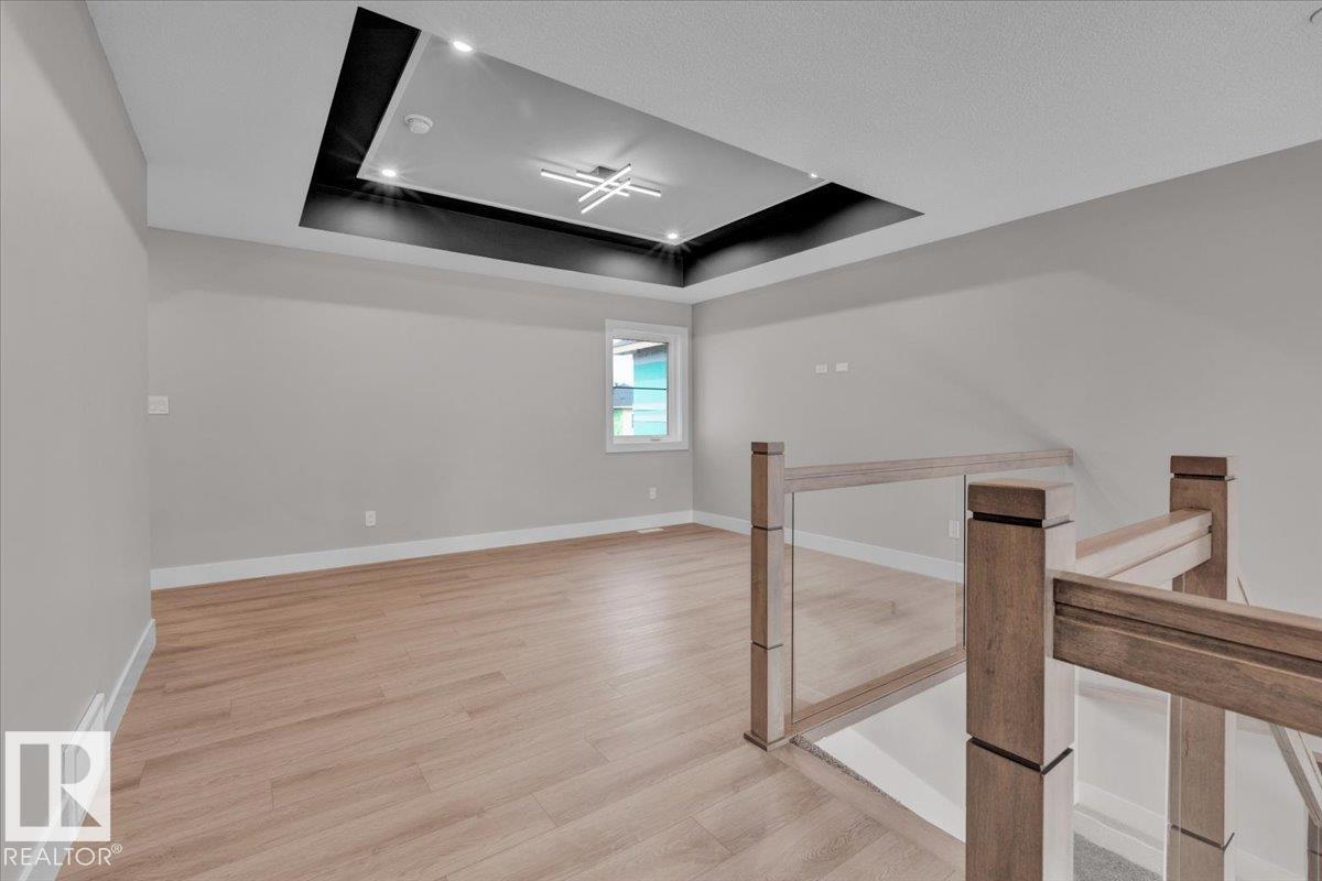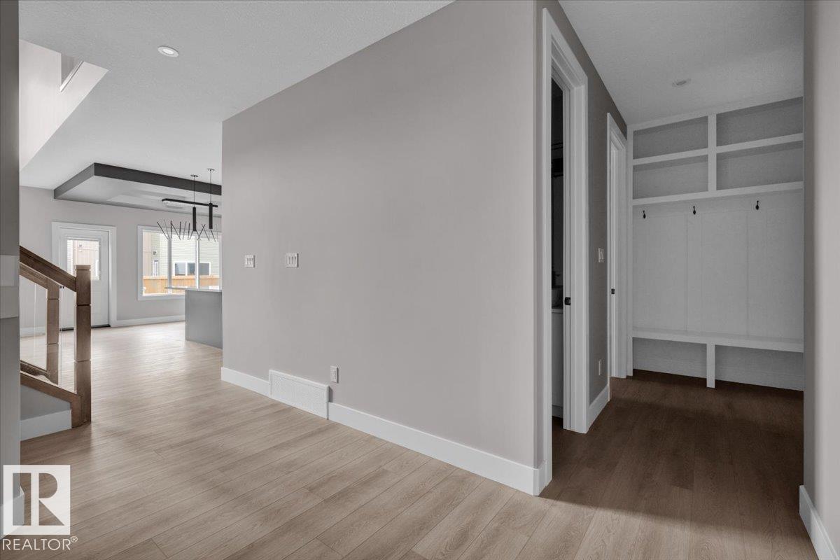 Quick possession available! This modern 5-bedroom two-storey home features an open-to-below 18' ceiling in the foyer and great room, with 9' ceilings on the main and basement levels and 8' ceilings upstairs. One bedroom is located on the main floor, with four additional bedrooms on the upper level--ideal for families or flexible living. Interior upgrades include coffered ceilings in the great room and primary bedroom, LED-lit crown molding, and in-stair lighting. The kitchen offers built-in appliances, gas cooktop, wall oven, and microwave. Flooring includes vinyl plank in common areas and carpet in bedrooms. Situated on a standard lot, the home includes Samsung or Whirlpool appliances and contemporary finishes throughout.