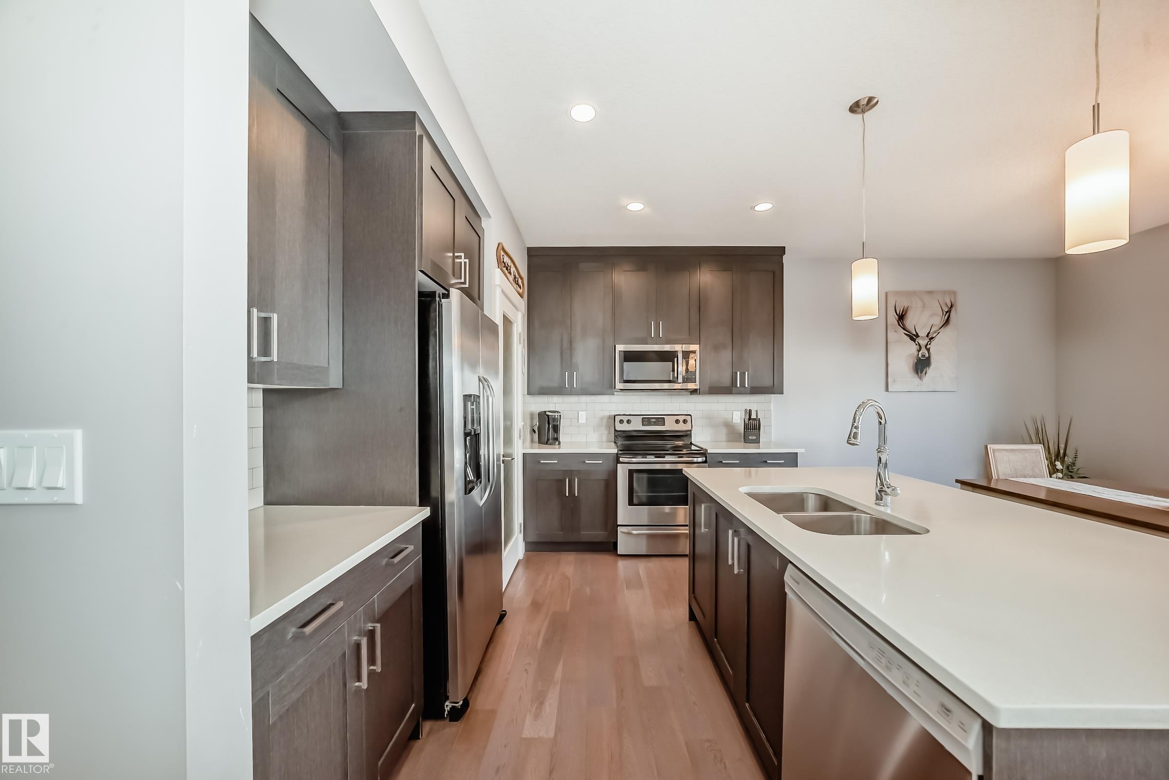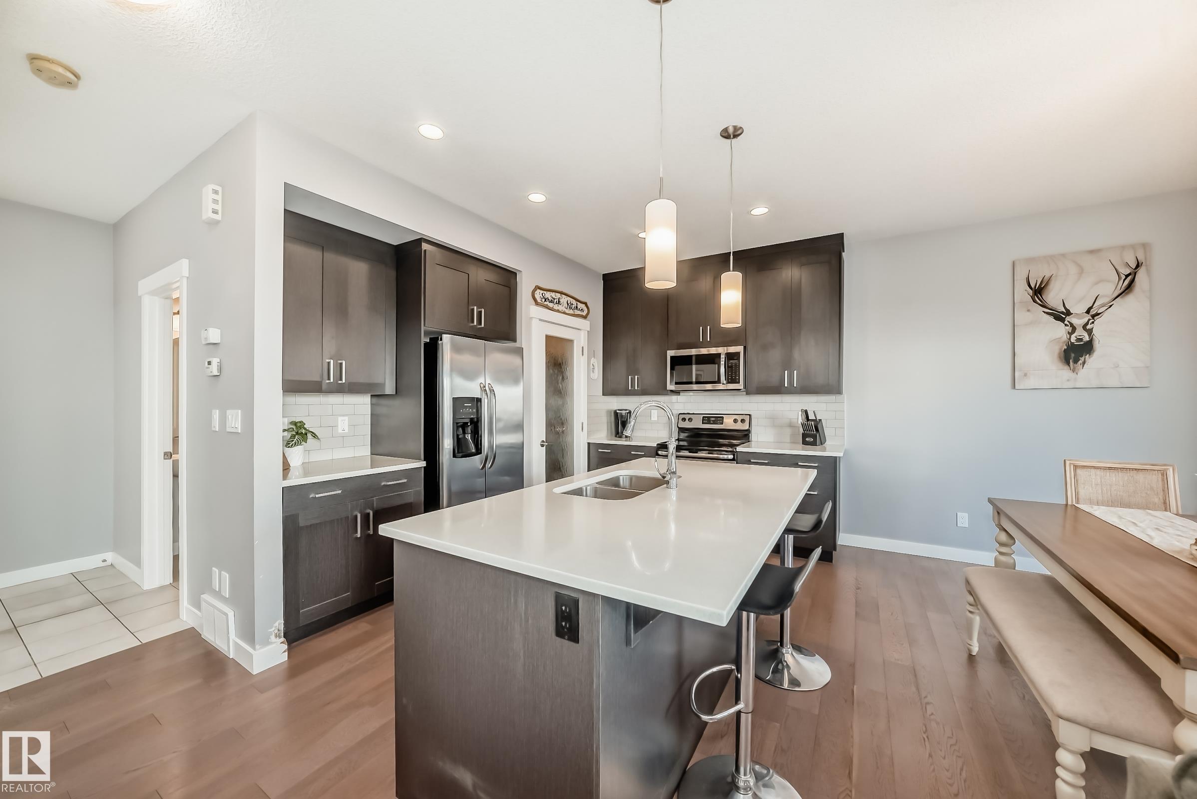 Perfect Family Home! This open concept 2 storey home offers 3 bedrrom, 2.5 bath and double attached garage that is 24' deep. This home features loads of upgrades including hardwood, 1 1/4" granite counters throughout, under mount sinks, full height back splash, crown moldings on upper cabinets, pot lights throughout the house and exterior. The upper floor features the primary bedroom with walk-in closet and ensuite, two additional bedrooms, a full main bathroom, and upstairs laundry. The basement is awaiting your personal touch. Fully fenced yard with mature landscaping and deck.